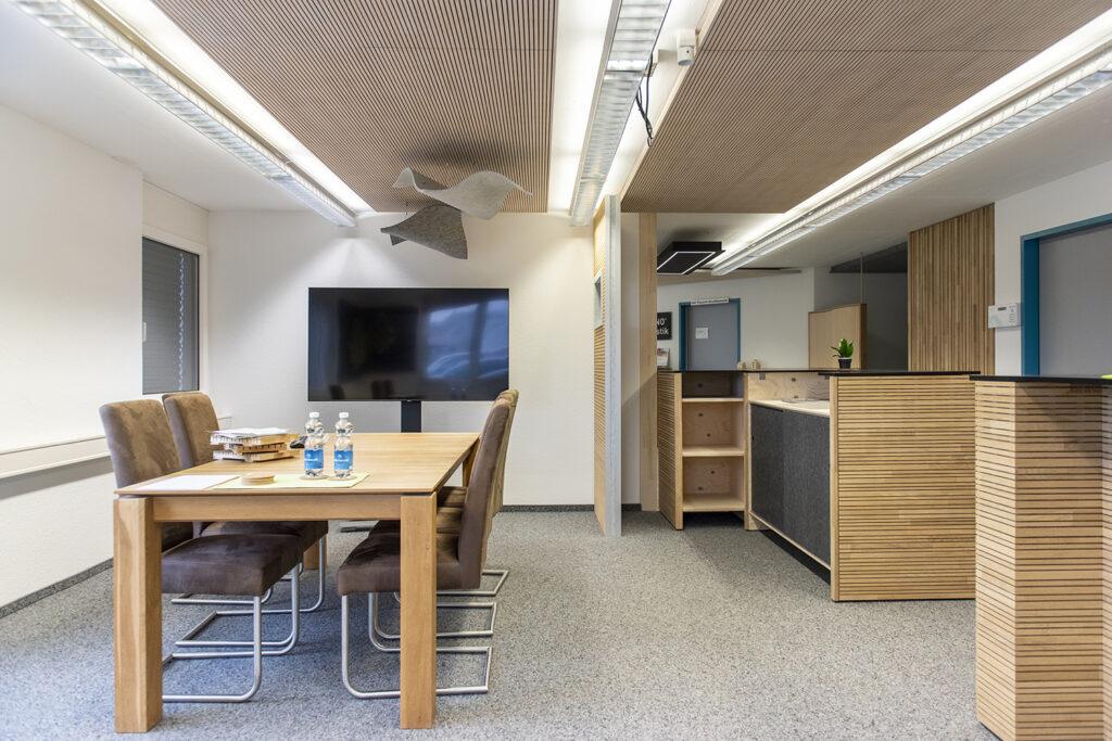 The modern seminar room is equipped with contemporary infrastructure.